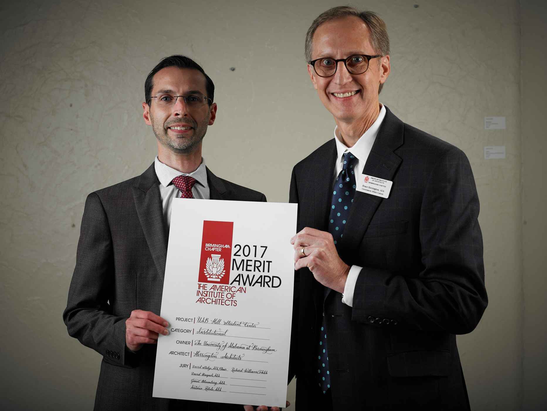 The American Institute of Architects (AIA), Birmingham Chapter hosts Design Awards each year to recognize excellence in architectural design by architects in our local chapter. These awards increase awareness of outstanding architects and honor architects, clients, consultants, and contractors who work together to improve the built environment.